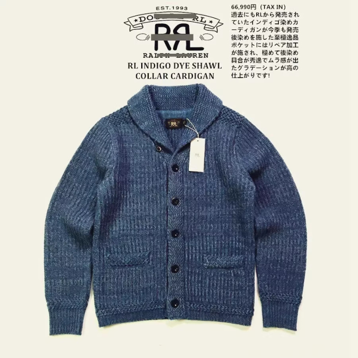 A型血 没几件包邮 靛蓝染落色做旧重磅 扭花棒针正蓝开衫毛衣