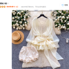 仙女氛围感小众蝴蝶结绑带收腰蕾丝拼接长袖荷叶边网纱连衣裙短裤