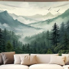 Туманный лесной гобелен естественный, черно-белый горный гобелен настенный успокаивающий серый пейзаж стены искусства Мужская спальня гостиная