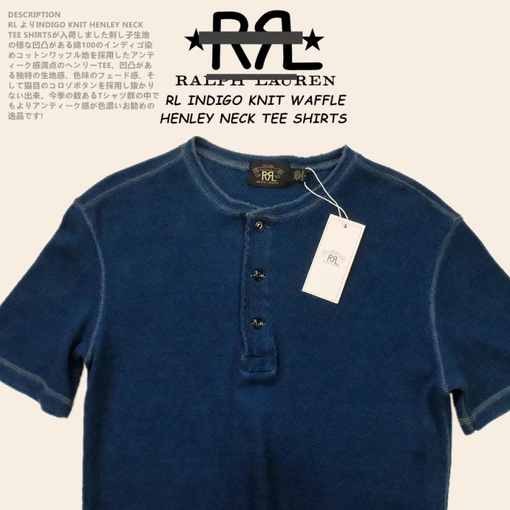 包邮狠货稀少!RL INDIGO亨利领短袖 经典洗水华夫格TEE 无补货!